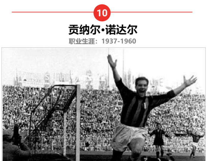 贡纳尔·诺达尔是著名的瑞典三剑客之一,也是意甲和AC米兰的传奇。他被公认为20世纪最优秀的前锋之一,以无与伦比的进球效率和在意甲的统治表现而闻名。他不仅代表了瑞典足球的巅峰,还在国际舞台上为北欧足球树立了丰碑。